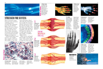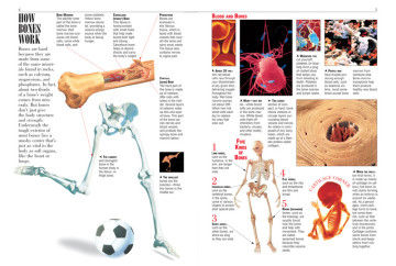The human skeleton, for kids, gets the full run-down here; they’ll learn about the axial skeleton, which includes the all-important spinal cord, and the appendicular one, which makes up the bones of our limbs. Moving on to the animal world, kids will enjoy reading about how salamanders can grow back missing limbs, and why antlers are bones, but horns are not. They’ll be intrigued by diagrams showing how fossils are made, and be surprised to find out that ancient Egyptians used ground-up mummies in medicines. Wrapping things up is a section describing bone maladies and the healing process of the human skeleton; for kids curious about X-rays, there are also some great images of hands and animal skeletons that reveal these incredible structures in colorful detail.